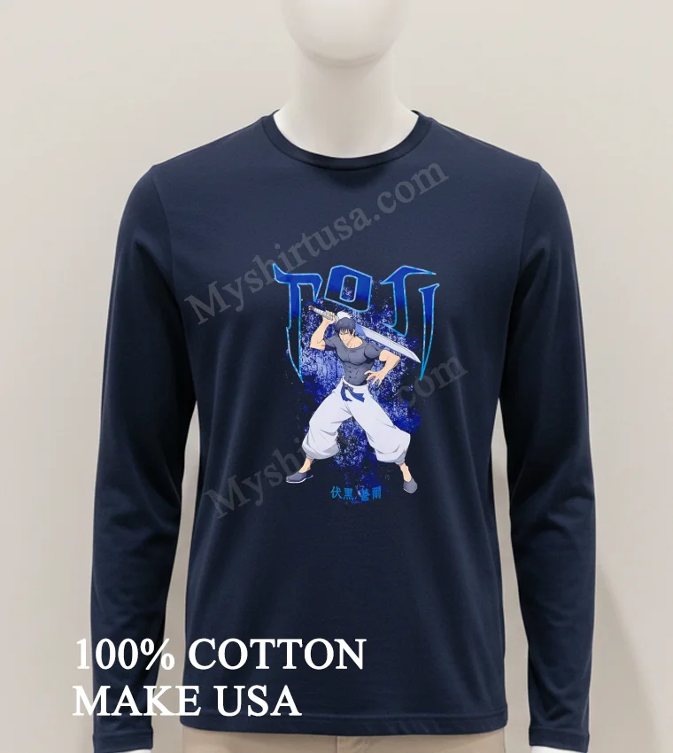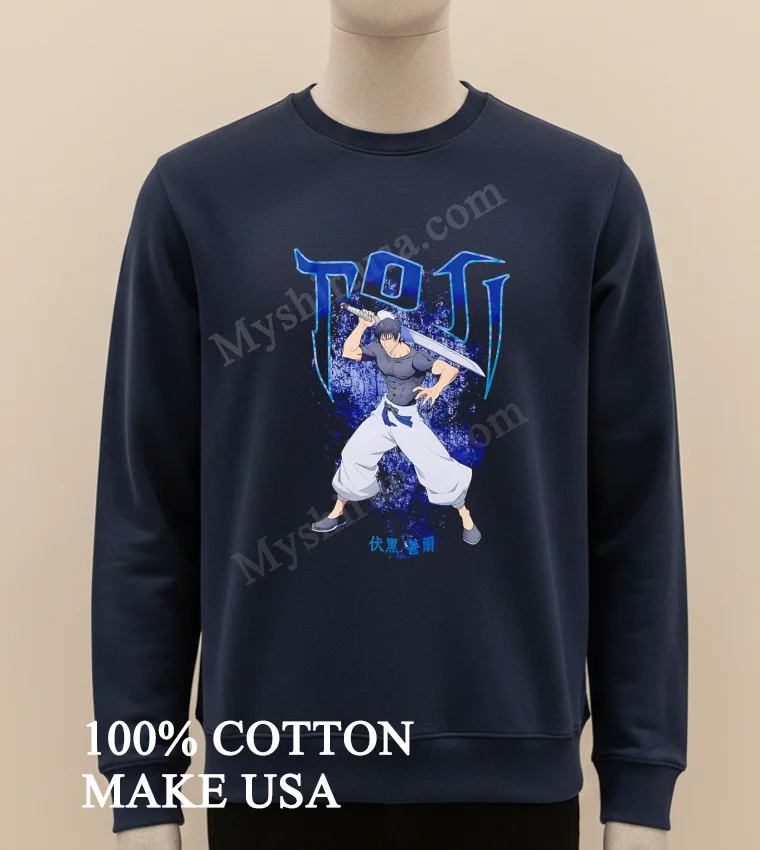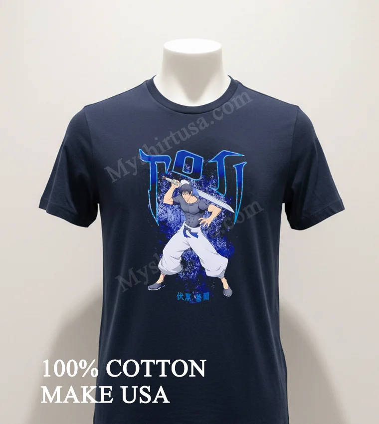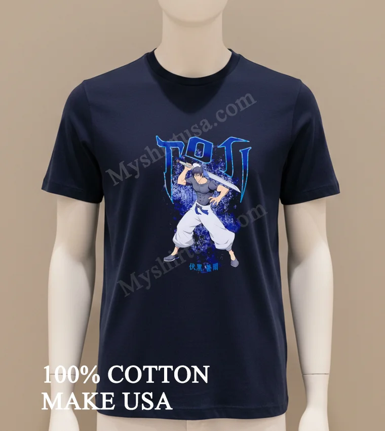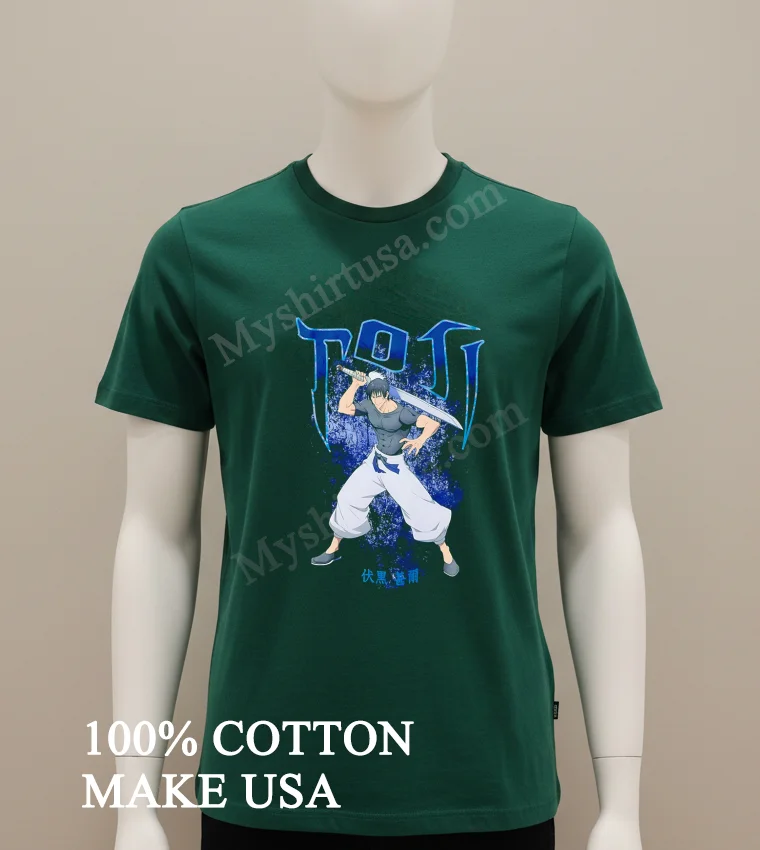 Here’s a standard SEO product listing for the Toji Fushiguro Jujutsu Kaisen Anime Character Blue Aura Sword Fighting Shirt from Myshirtusa: