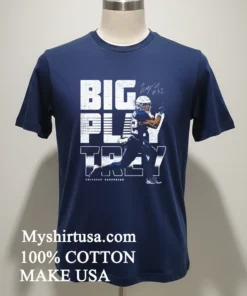 Now, let’s talk about what makes this tee truly stand out. Unlike those flimsy, one-wash wonders, the design on this shirt isn’t some cheap iron-on that’ll crack after a few wears. It’s printed with a durable, vibrant technique that maintains its sharp details and rich colors, celebrating Treveyon’s “Big Play Trey” persona with a bold, New England-inspired graphic. We’re talking about a shirt that feels substantial, not paper-thin. Made from 100% premium American cotton, it’s soft to the touch, breathable for those intense game days or just a casual Saturday, and has just the right amount of stretch. The classic crew neck and standard fit make it versatile perfect for layering under a hoodie on a chilly fall day or rocking solo with some distressed jeans and your favorite sneakers. To keep it looking its best, wash it inside out in cold water with similar colors, tumble dry low, and avoid harsh bleaches or ironing directly on the design. Treat it right, and this shirt will be a MVP in your wardrobe for seasons to come.