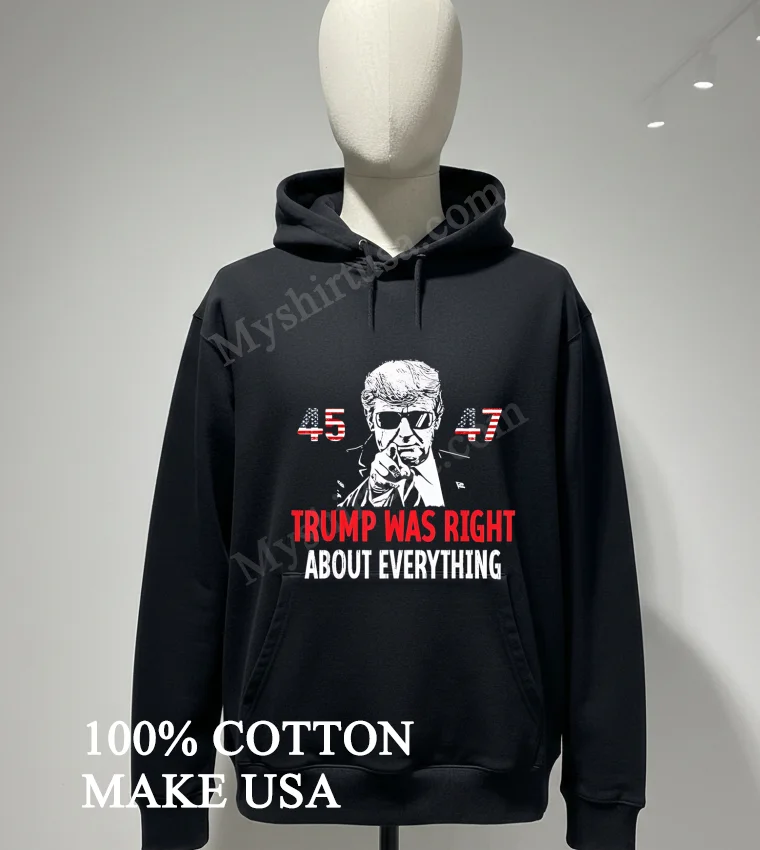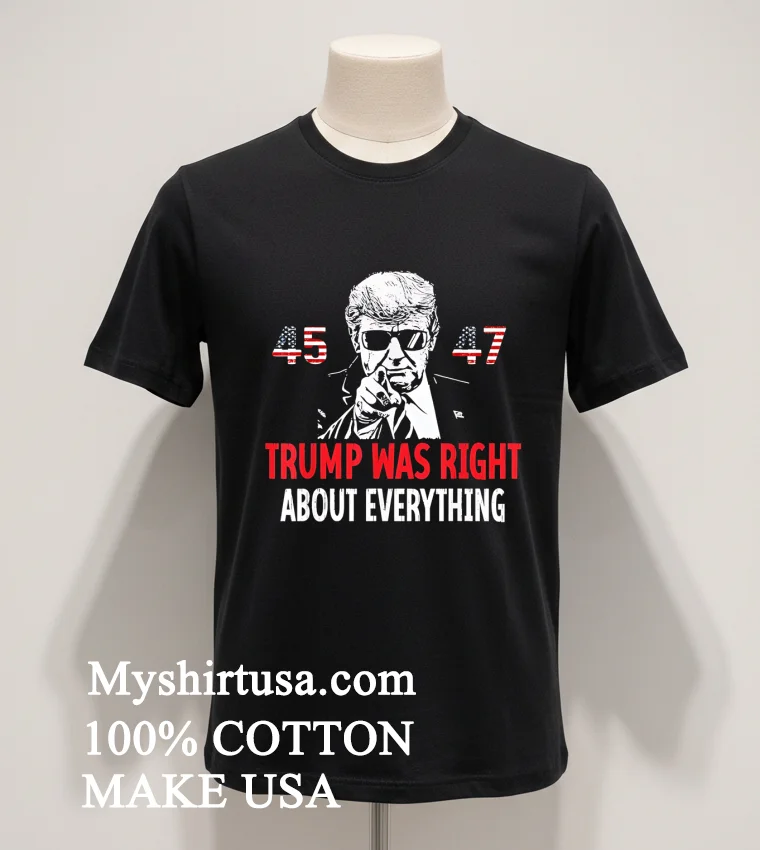 Ready to wear your truth with pride? Why settle for anything less when you can proudly sport a high-quality, authentic American message? Our Trump Was Right About Everything American Flag 45 47 Shirt offers unmatched quality: 100% American Cotton, soft, stretchy, and incredibly breathable. For just $23, enjoy lightning-fast 3-5 day US delivery for this Vintage, Streetwear, American style essential. Don’t wait to make your powerful statement today! Shop yours now at Myshirtusa! #Trump4547 #AmericanPatriot #VintageUSA #StreetwearFashion #Myshirtusa