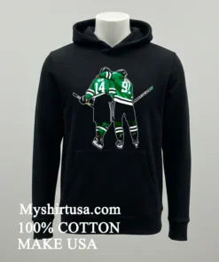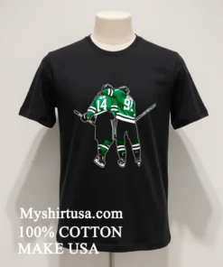 Remember that electrifying night when Tyler Seguin and Jamie Benn pulled off that iconic celebration? The energy was unreal! Just last week, I was scrolling through Twitter, and even some sports commentators were reminiscing about that very moment, sparking a whole new wave of nostalgia and fan appreciation. That’s exactly what this tee captures. This isn’t just a T-shirt; it’s a piece of history for any true hockey fan, a wearable memory of skill and teamwork. Imagine wearing it to your next watch party, a tailgate, or even just out and about. It perfectly taps into that casual, authentic vibe that’s currently dominating the fashion scene think “blokecore” meets comfortable streetwear. It’s about showing your passion without trying too hard, effortlessly cool and always relevant. This shirt is for anyone who loves the thrill of the game and wants to carry a piece of that excitement with them, whether you’re heading to the rink or just running errands.
