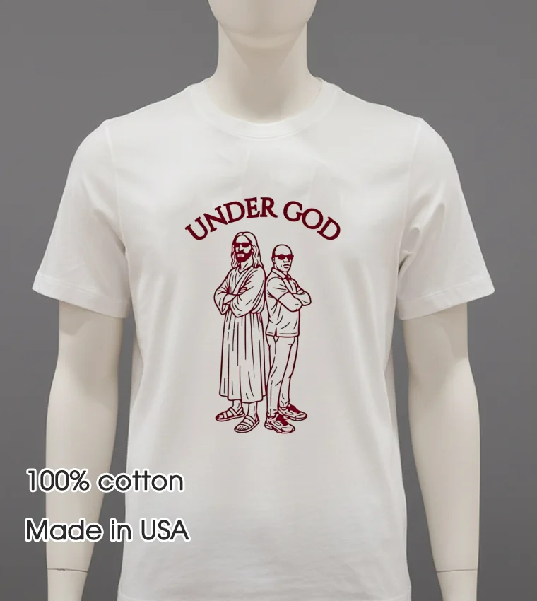 Ready to make a statement that’s both stylish and significant? Why settle for ordinary when you can own a piece of the conversation? Grab your Under God Giesu And Kanye West Shirt today! Crafted from 100% American cotton, soft, stretchy, and breathable, this vintage streetwear staple is priced at just $23 USD. Enjoy lightning-fast 3-5 day delivery right to your US doorstep. Don’t wait define your style!