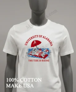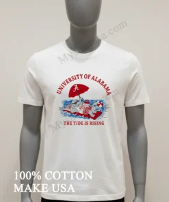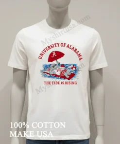 As an American consumer, finding a T-shirt that truly stands out in a sea of fan apparel is key. This shirt isn’t just another logo tee; its “The Tide Is Rising” graphic with Big Al is a dynamic, artful take on team spirit, elevating it beyond basic merchandise. Unlike flimsy imitations, this T-shirt is crafted from 100% premium American cotton, offering a soft, breathable feel perfect for a warm Southern Saturday or a cool fall evening at the stadium. I love pairing it with distressed jeans and sneakers for a classic streetwear vibe, or even under a denim jacket for an extra layer of style. To keep it looking pristine, I always wash it inside out in cold water, tumble dry low, and never iron directly on the print that’s how you keep your favorite gear looking fresh for seasons to come. You’ll see fans proudly sporting and discussing this exact design on Reddit’s /r/RollTide and Instagram, under hashtags like #BamaStyle and #CrimsonTideFashion.