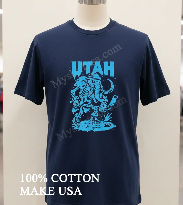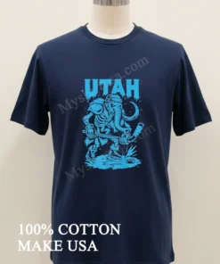 Did you catch the buzz around that viral TikTok of Jason Kelce rocking a vintage-inspired tee after the Super Bowl? Or maybe the sports commentators debating the best fan gear for the upcoming NHL playoffs? That energy, that passion for unique expression and sports culture, is exactly what the Utah Salty Goon Gear Skeletal Mammoth Holding Ice Hockey Stick Shirt captures. It’s not just a shirt; it’s a statement, a nod to the rugged spirit of ice hockey and the ancient, majestic power of the mammoth, all with a distinctly “salty” Utah twist. Imagine wearing this to your local pub to watch the game, sparking conversations, or to a summer music festival where “gorpcore” and “vintage sportswear” are huge trends right now. This isn’t just for die-hard fans; it’s for anyone who appreciates a touch of quirky, cool Americana in their wardrobe, especially as the “comfort-first fashion” movement continues to dominate, blending athletic aesthetics with street style for that effortlessly cool look.
