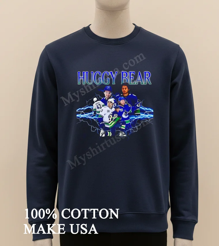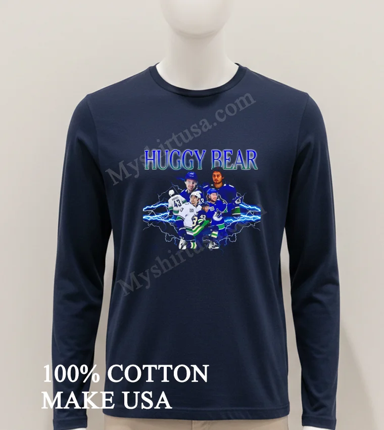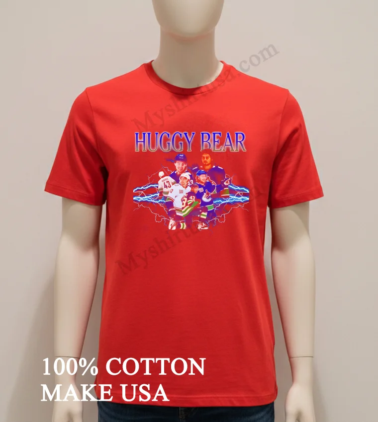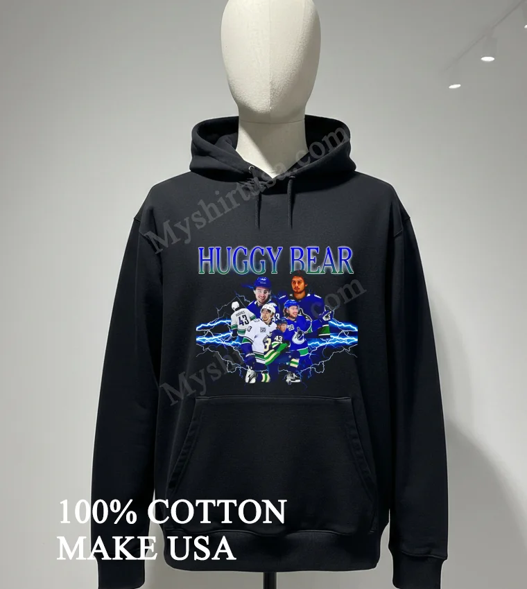 This isn’t just another fan shirt you’ll wear once. Our design truly captures Quinn Hughes mid-action, a dynamic lightning bolt graphic erupting with energy, emphasizing his game-changing speed on the ice. It’s a statement piece that screams “I know hockey!” and stands miles apart from generic team logos. Crafted from 100% premium, ultra-soft American cotton, it feels incredible on your skin a stark contrast to those rough, scratchy stadium buys that fade after two washes. The classic crew neck and comfortable athletic fit make it incredibly versatile for any occasion. Me? I love to pair mine with dark wash denim and my favorite sneakers for a laid-back game-day vibe, or layer it under an open flannel shirt for a touch of American streetwear style. To keep that print sharp and the color vibrant, always wash it inside out in cold water, steer clear of bleach, and tumble dry low. For truly best results and longevity, air dry it flat. Want to dive deeper into the hype? Fans are constantly discussing it on dedicated subreddits like Reddit’s r/Canucks or joining the chatter across Twitter using popular hashtags like #HuggyBear and #CanucksNation!