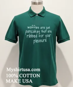 Ready to add some personality to your closet? Why settle for boring when you can wear a smile? Our high-quality Waffles Are Just Pancakes That Are Ribbed For Your Pleasure Shirt guarantees 100% American Cotton, soft, stretchy, and breathable comfort for just $23 USD. Enjoy quick 3-5 day US delivery. Choose genuine American Vintage, Streetwear style from Myshirtusa!