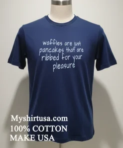 Customers rave about Myshirtusa‘s quick 3-5 day free shipping pure joy receiving it fast! They express genuine happiness over the quality and comfort. Curious about returns? Their policy is clear. This isn’t just any tee; it’s a feel-good staple, especially the Waffles Are Just Pancakes That Are Ribbed For Your Pleasure Shirt.