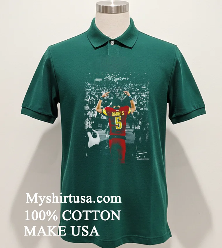 Ready to join the buzz and wear your pride? Why settle for anything less than premium quality and undeniable style? Our Washington Commanders Jayden Daniels All Eyes On 5 Shirt is crafted from 100% American Cotton soft, stretchy, and breathable. Get yours today for just $23 USD, with speedy 35 day delivery across the US. Experience vintage vibes meets modern streetwear, the true American style!