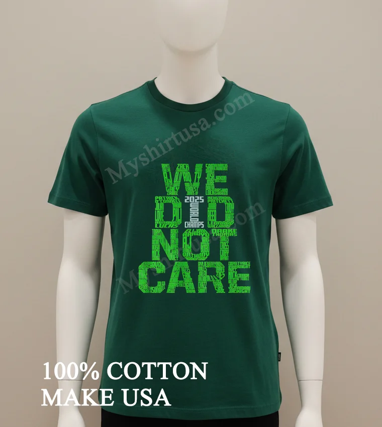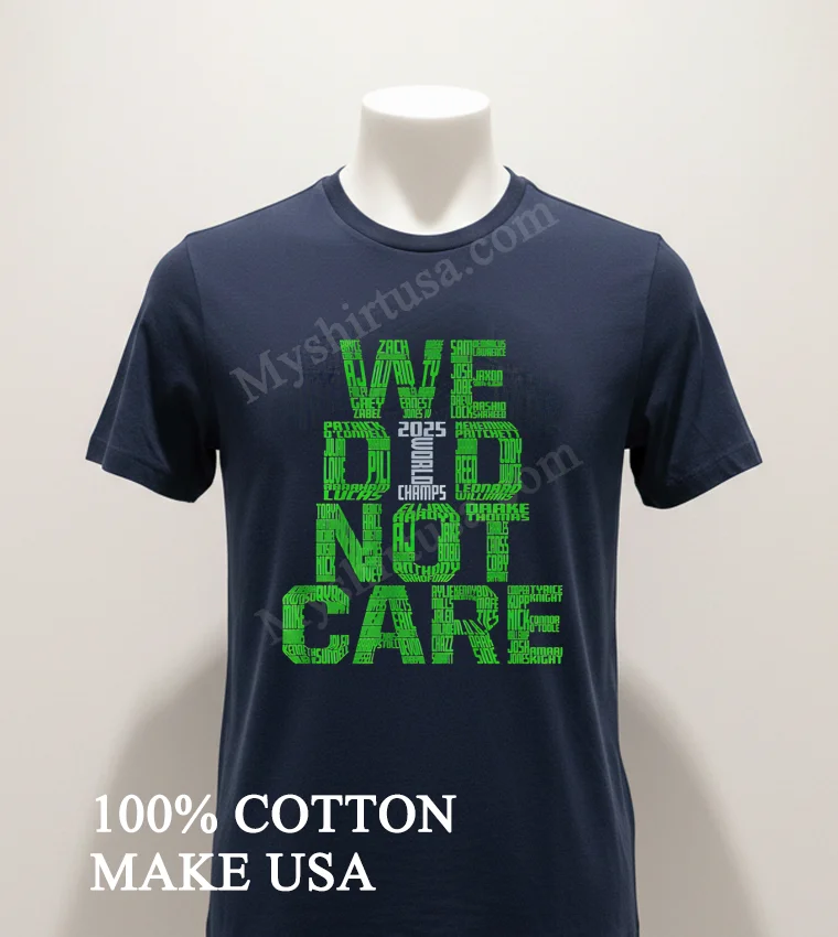 The ‘We Did Not Care’ attitude is absolutely everywhere these days from grassroots sports leagues making a bold statement, to indie music festivals embracing unique graphic tees, and even influencing designs at local fashion shows. This We Did Not Care 2025 World Champs Green Typography Names Shirt perfectly captures that audacious, confident spirit, an anthem for those who march to their own beat. You can quickly and easily snag your ‘World Champs’ tee, featuring that striking ‘Green Typography,’ or even explore personalized ‘Names Shirt’ options, right now at myshirtusa.com. It’s truly for everyone who just ‘Did Not Care 2025’ about conforming.