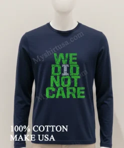 What truly sets this tee apart isn’t just the powerful ‘We Did Not Care’ message; it’s the vibrant, dynamic green typography that demands attention. Unlike mass-produced alternatives, this tee uses a premium, soft-touch fabric, making it incredibly comfortable yet durable ideal for everything from a chill backyard cookout to catching a concert in the city. Its versatile fit makes styling a breeze: throw it on with distressed denim or rock it under an unbuttoned plaid shirt. To maintain that fresh look, always machine wash cold, inside out, and tumble dry on low. Never iron directly on the graphic! You’ll spot this design creating buzz on TikTok, r/Streetwear on Reddit, and niche Discord fashion groups. It’s more than just a tee; it’s a statement.