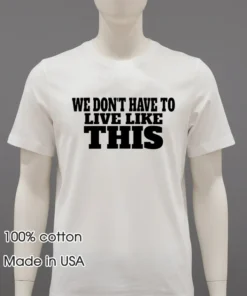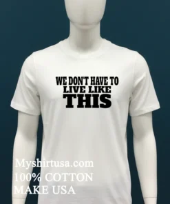“Absolutely thrilled with my We Don T Have To Live Like This Shirt! ‘It arrived in just 3 days, free shipping, exactly as promised!’ says delighted customer Sarah M. ‘The quality is fantastic, I wear it all the time.’ We love hearing that! Wondering about our easy return policy or how quickly we ship? Our customers consistently rave about the prompt delivery from Myshirtusa and the comfort of our tees they reach for day after day.”
