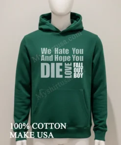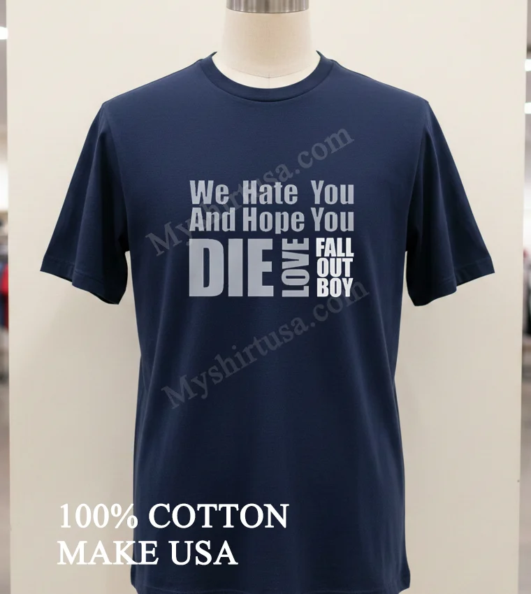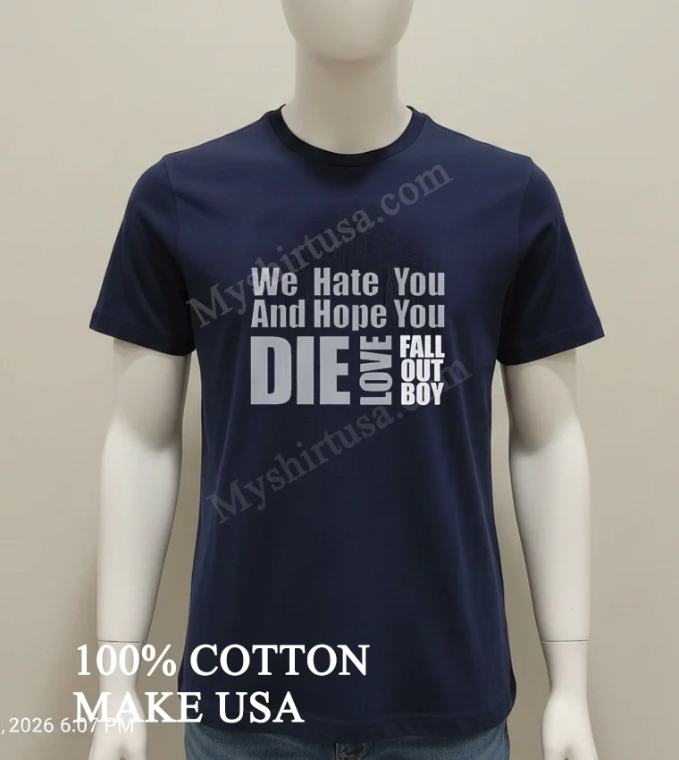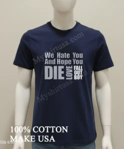 What sets this shirt apart, honestly, isn’t just the iconic phrase “We Hate You And Hope You Die Love Fall Out Boy Shirt” it’s the feeling it evokes. Unlike those mass-produced band tees you find everywhere, this one just feels right. The design itself, bold and unapologetic, is printed with such care, it looks like it’s been perfectly worn-in, like a treasure from a thrift store without the questionable stains. It’s not some flimsy heat-transfer that cracks after a wash; this feels durable, built to last. We’re talking 100% premium American Cotton here, folks. It’s got that perfect weight not too heavy, not too light that drapes just right. Whether you’re going for an oversized, relaxed fit to pair with some baggy jeans and chunky sneakers, or tucking it into a denim skirt with combat boots for a more dressed-up, edgy vibe, it just works. And because I want this gem to last forever, I always wash it inside out in cold water, gentle cycle, and either hang it to dry or tumble dry on the lowest setting. My grandma always said, “Treat your clothes right, and they’ll treat you right,” and she wasn’t wrong!