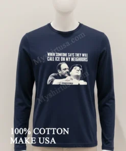 The timeless appeal of Tony Soprano has certainly seen a resurgence lately, with new documentaries and social media trends keeping the legendary mob boss in the spotlight. Whether you’re planning a Sopranos binge-watching party or just want to rep a classic piece of TV history, myshirtusa.com is your go-to. You can quickly and easily snag your own When Someone Says They Will Call Ice On My Neighbors Tony Soprano Shirt, perfect for any Sopranos fan looking for unique mobster tees or vintage TV show apparel.
