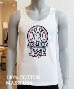 Forget basic team shirts; this one’s a statement. Its bold graphic flawlessly blends Jey Uso’s raw energy with classic Yankees pinstripes a design that truly stands out in any crowd. Unlike thinner, flimsy competitors, ours uses premium 100% American Cotton, incredibly soft and breathable, perfect for a scorching summer day or a cool fall evening. Rock it vintage with faded jeans and classic sneakers, or embrace modern streetwear with cargo shorts and fresh kicks. To maintain its killer look, wash cold, inside out, and tumble dry low absolutely no bleach! This shirt’s a hot topic on Reddit’s r/SquaredCircle and Twitter; everyone’s buzzing about this epic mashup.