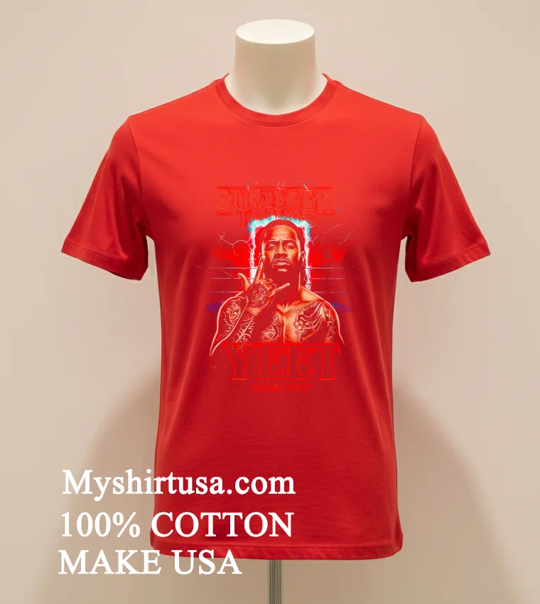 What truly sets this tee apart from those flimsy, one-wash wonders? Let’s talk about the design first. It’s not just a simple logo; it’s a masterclass in pop culture mashup. You get the unmistakable swagger of Jey Uso, cleverly intertwined with the iconic aesthetic of Stranger Things think Upside Down vibes meeting a superkick. The “Yeet” isn’t just a random word; it’s a cultural touchstone, perfectly capturing the shirt’s rebellious, fun spirit. This isn’t your average mass-produced concert tee; it feels curated. Then there’s the material: 100% premium American Cotton. You can feel the difference; it’s got that perfect weight not too heavy, not too thin that drapes just right. It’s soft, breathable, and frankly, it just feels good against your skin, unlike those stiff, synthetic blends. Styling it? Easy. Throw it on with your favorite distressed denim and sneakers for a casual, cool vibe. Layer it under an open flannel shirt or a bomber jacket when the weather turns cooler, or even pair it with some dark joggers for an elevated athleisure look. To keep this masterpiece looking its best, just turn it inside out before washing in cold water, tumble dry on low heat, and avoid bleach. Iron on low if you must, but honestly, its relaxed, slightly worn-in look is part of its charm. Treat it right, and it’ll be a go-to for years.