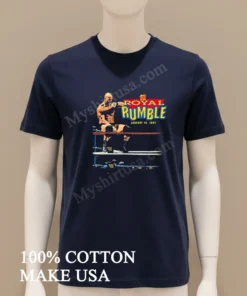 Okay, let’s talk about why this shirt stands out in my closet. The graphic itself isn’t some pixelated mess; it’s a vibrant, crisp image that perfectly captures the intensity of that ’97 event. It’s got that authentic, slightly distressed look that high-end vintage tees are rocking right now, way better than those flimsy, mass-produced knock-offs you see everywhere. We’re talking 100% premium American Cotton here seriously soft, breathable, and feels like it’s already a beloved favorite the second you put it on. I love throwing mine on with some faded denim shorts and chunky sneakers for a casual weekend brunch, or layering it under an open plaid shirt for that quintessential Americana look. To keep this legend alive, wash it inside-out in cold water, and tumble dry on low. Avoid harsh chemicals! Want to connect with others flaunting this iconic style? Hit up the WWE Universe forums or dive into #WWERoyalRumble discussions on X (Twitter) you’ll find your tribe.