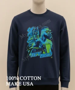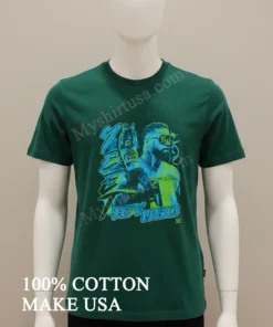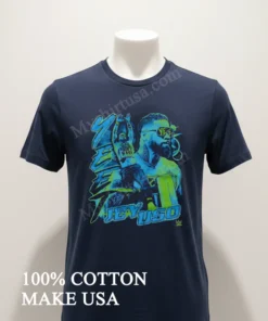 Let’s talk about what makes this tee a standout. First off, the design itself a vivid blue and green artistic portrait of Jey Uso. It’s not your typical photo print; it’s got this cool, painterly quality that gives it a sophisticated edge. While other wrestling tees might be a bit loud or too “in-your-face,” this one strikes a perfect balance between fandom and contemporary art. It’s what you grab when you want to rep your favorite wrestler but also look genuinely stylish. And the material? Oh man, it’s 100% American Cotton. You know that feeling when a shirt just drapes perfectly, soft against your skin, not stiff or scratchy? That’s this tee. It’s got that comfortable, lived-in feel from day one. It’s breathable for those hot summer days, but also great for layering under a flannel or a denim jacket when there’s a chill in the air. For styling, you can go classic with your favorite jeans and sneakers for a laid-back, American streetwear look, or even tie a knot at the waist with some high-waisted shorts for a more vintage, cropped vibe. To keep it looking its best, wash it inside out in cold water, and tumble dry on low. Avoid bleach, and if you need to iron, do it on a low setting, inside out. Trust me, treat it right, and this shirt will be a wardrobe staple for ages.