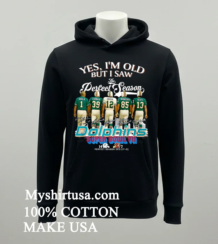 Why just wear a shirt when you can wear history? Grab your Yes I M Old But I Saw The Perfect Season Miami Dolphins Super Bowl Vii Shirt today! Crafted from 100% American Cotton soft, breathable, at just $23. Enjoy swift 3-5 day US delivery, perfect for your Vintage, Streetwear, American style. Shop Myshirtusa now!
