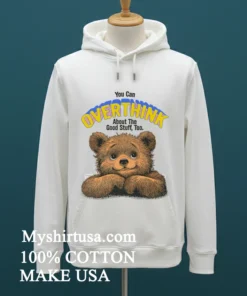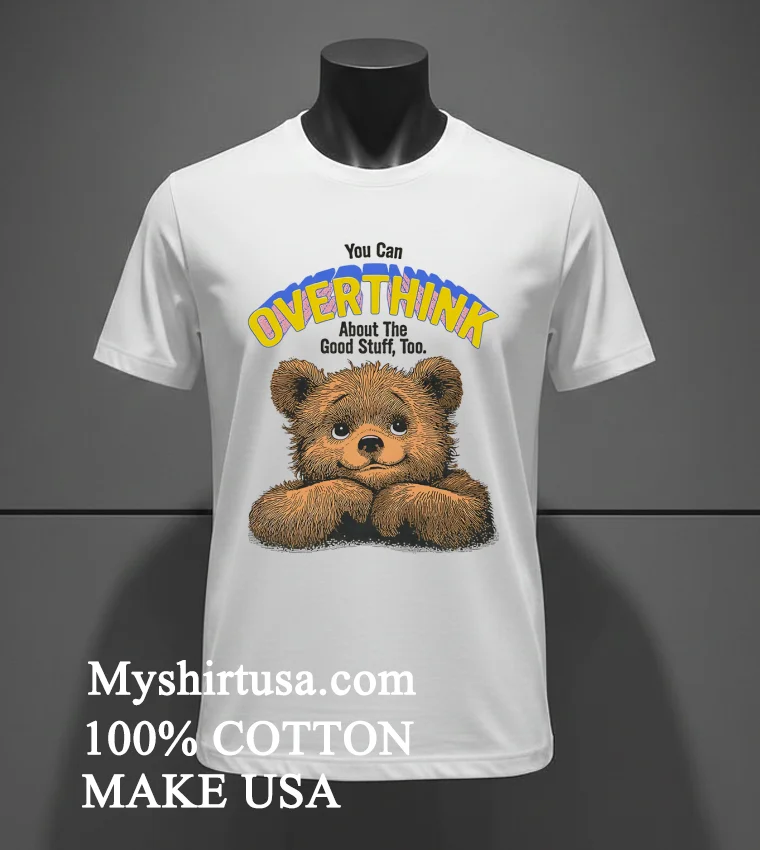 Remember that viral tweet from Chrissy Teigen about needing a reminder to chill out and enjoy the little things? Or maybe you caught that segment on Good Morning America last week discussing how ‘dopamine dressing’ is the latest trend clothes that instantly boost your mood? That’s exactly where the You Can Overthink About The Good Stuff Too Bear Cute Shirt fits in. Imagine you’ve just spent hours scrolling through social media, seeing everyone’s perfectly curated lives, and you’re feeling that familiar pressure to achieve, achieve, achieve. That endless ‘hustle culture’ burnout we hear so much about. This isn’t just a shirt; it’s a gentle nudge to pause. Maybe you’re prepping for a weekend brunch with friends, or heading to a low-key concert in a park embracing that ‘effortless chic’ vibe that’s dominating urban street style right now. It’s perfect for those moments when you need to switch off the internal monologue and simply bask in the good. It’s a statement against the constant overthinking, a wearable whisper to embrace joy and simplicity, whether you’re at a local farmers market or just chilling at home on a Sunday afternoon, enjoying your favorite comfort show.