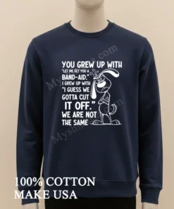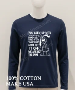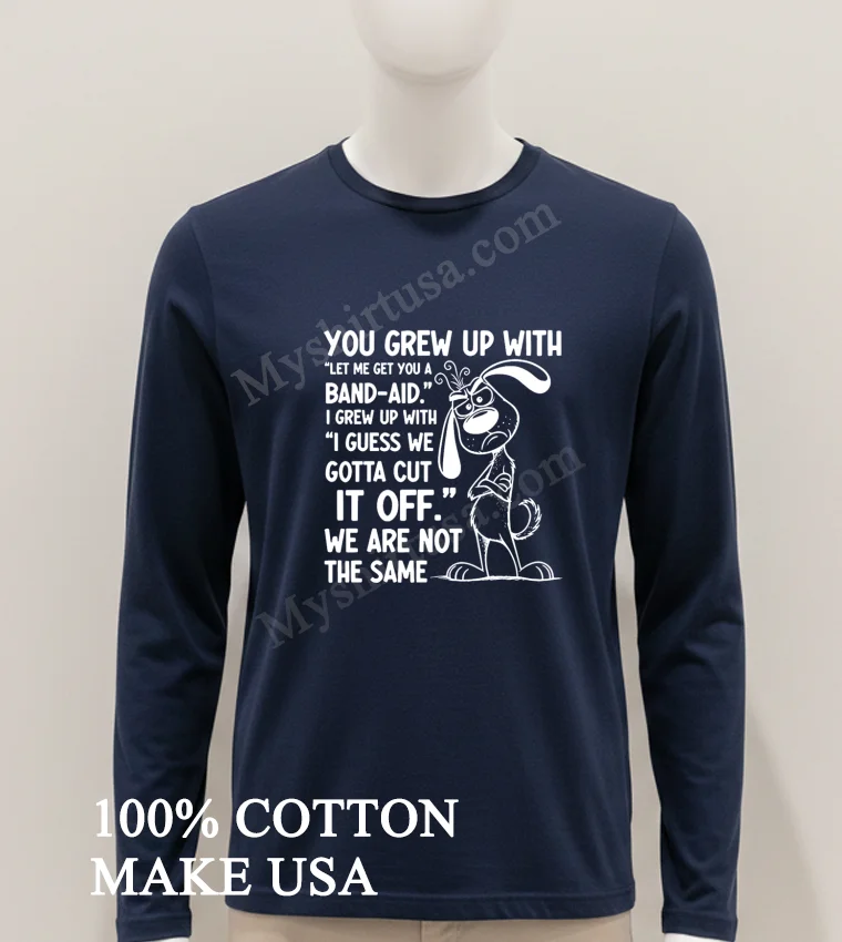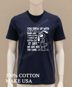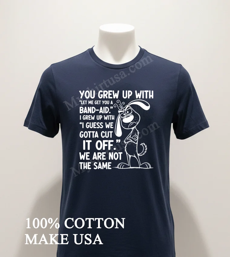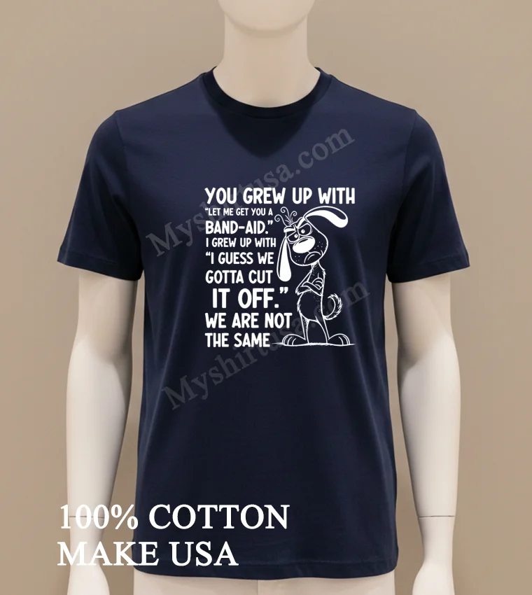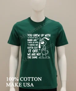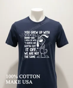 This tee perfectly captures that modern American spirit whether it’s the DIY punk attitude, embracing sustainability by “cutting out” waste, or just appreciating dark humor. It resonates from indie music festivals to urban street style scenes, reflecting today’s desire for authentic self-expression. You can easily grab your very own You Grew Up With Band Aid I Grew Up With Cut It Off Shirt at myshirtusa.com, perfect for those seeking unique graphic tees, bold statement shirts, or ironic fashion with a distinct edge.
